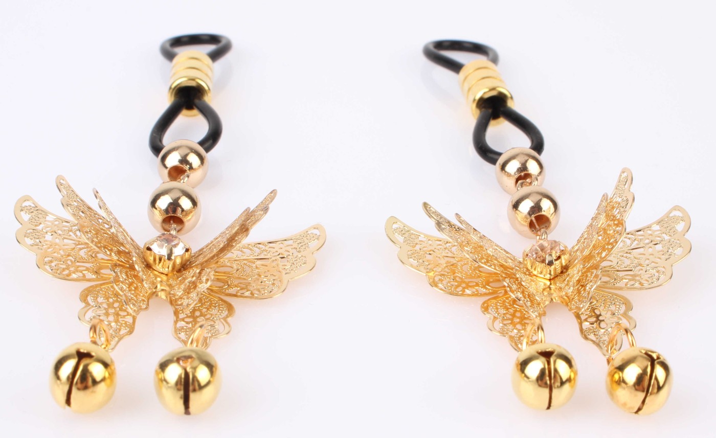 A pillangó alakú, aranyos mellbimbóbilincsek ékszerként díszítik a melleket, és nem okoznak fájdalmat a viselőjének a szilikonbimbók meghúzása után. Ezért olyan kezdőknek is alkalmasak, akik nem vágynak BDSM játékra, de egy szép kiegészítőt keresnek az előjáték feldobásához. A szorító megbízható szabályozásának köszönhetően a kis és nagy mellbimbókon is tartanak, és nem esnek le. Hölgyeim, vegyék fel szexi fehérneműjüket, helyezzék az aranyszínű bilincseket a mellbimbóikra, és adjanak izgalmas műsort partnerüknek. Ezzel felhívod a figyelmet és kíváncsi ujjait tested egyik legérzékenyebb erogén zónájára.