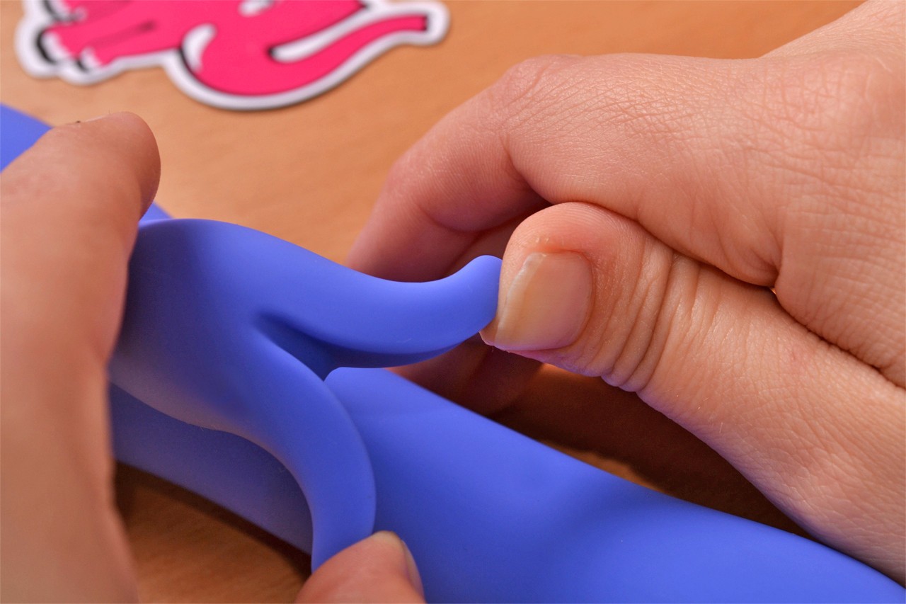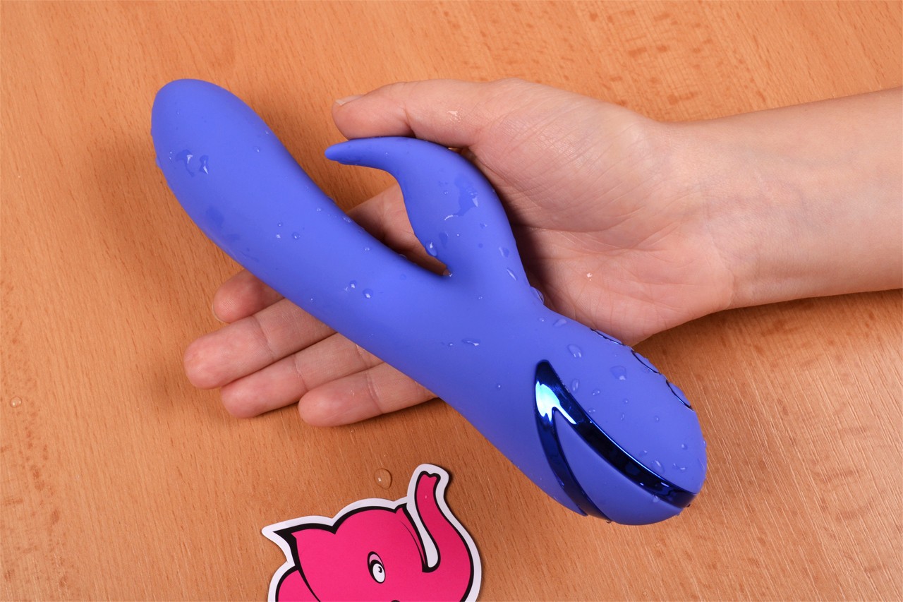 A mélykék vibrátor jellegzetes fülekkel a kiemelkedésben füles nyúlra emlékeztet. Anatómiailag jól formázott vibrátor lekerekített, enyhén kiszélesített heggyel a nagyszerű töltésért. A gömbölyű, vezérlőgombokkal ellátott fogantyúnak köszönhetően jól tart.