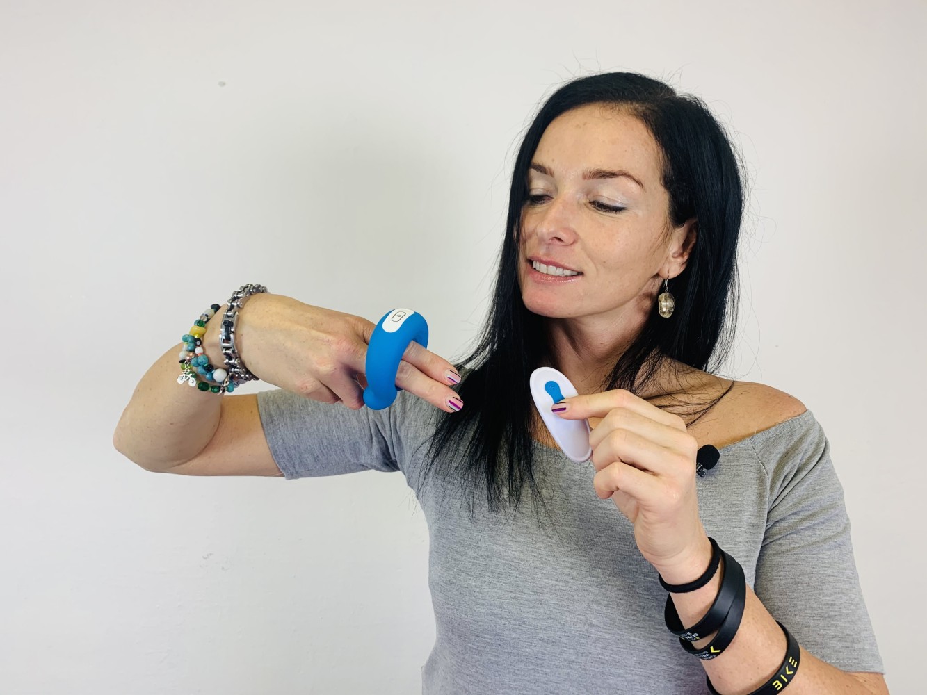 Könnyen kezelheti az egyszerű műveletet, mert a vibrátoros kezelőpanelen csak egy vezérlőgombot talál. Nyomja meg és tartsa lenyomva a widget be- és kikapcsolásához. A rezgési programokat magán a segédeszközön lévő vezérlőgomb rövid megnyomásával vagy a rezgésjellel ellátott gombbal vezérelheti. Maga a vezérlő hatótávolsága 5–10 méter. A játék bekapcsolásakor a gomb kéken világít, majd az egyes vibrációs programok ritmusában villog.