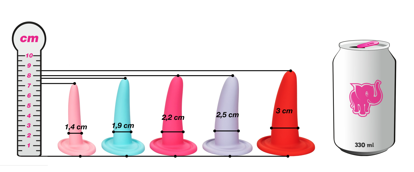 A készletben 5 db különböző méretű vagina dilátort talál, anatómiailag precíz hajlítással a könnyű behelyezés érdekében. A tágítók követik egymást méretükben. Ezért a nők használhatják hüvelyi izmaik edzésére.